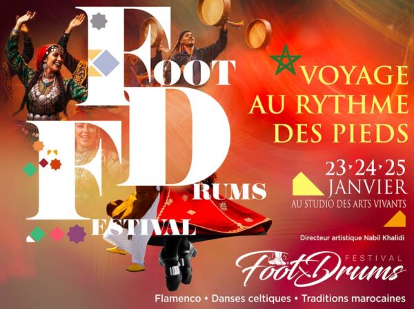 تحتضن مدينة الدار البيضاء، خلال الفترة الممتدة من 23 إلى 25 يناير الجاري، فعاليات الدورة الأولى من مهرجان Foot & Drums، الذي تنظمه Top Event Production بـStudio des Arts Vivants، في تجربة فنية تحتفي بالرقصات والموسيقى التي ينبع إيقاعها من الخطى، باعتبارها تعبيراً جسدياً وإنسانياً مشتركاً بين ثقافات العالم.